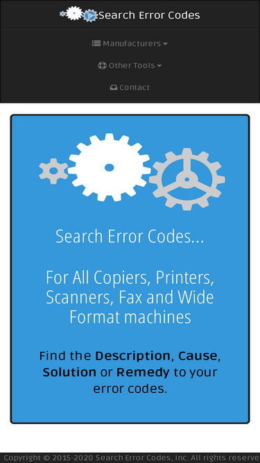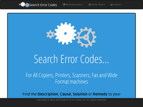 87%search error codes for all copiers, printers, scanners, fax and wide format machines. manufacturers include brother, canon, duplo, epson, hp, kip, konica, konica minolta, kyocera, lexmark, mimaki, minolta, mutoh, oki, panasonic, ricoh, riso, roland, samsung, sanyo, sharp, toshiba, xerox and zebra