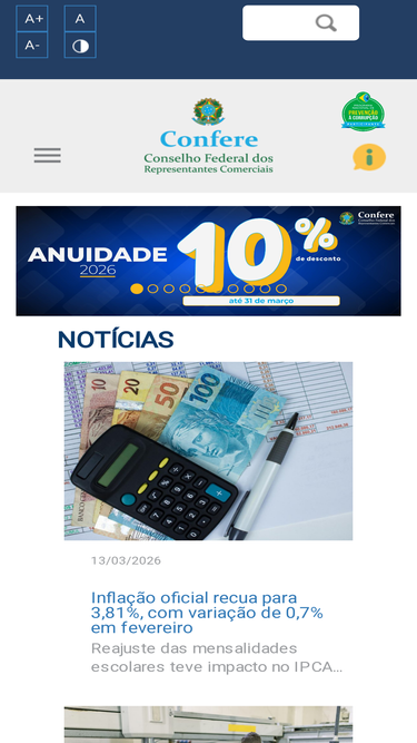 85%home do site do confere (conselho federal dos representantes comerciais)