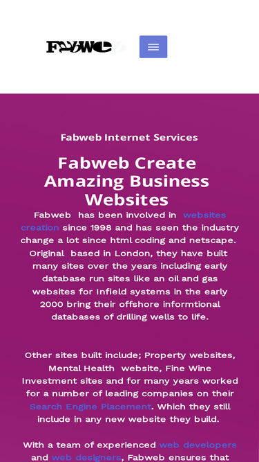 98%Web service and Web designers Fabweb Internet Services are proven Search Engine Optimisation experts, Web designers, Flash Design and Internet Marketing SEO.From website concept to creation Fabweb's web design, SEO experience and web site expertise is critical