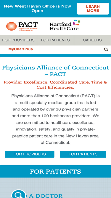 100%Physicians Alliance of Connecticut (PACT) is a multi-specialty medical group led and operated by over 30 physician partners and 100 providers.