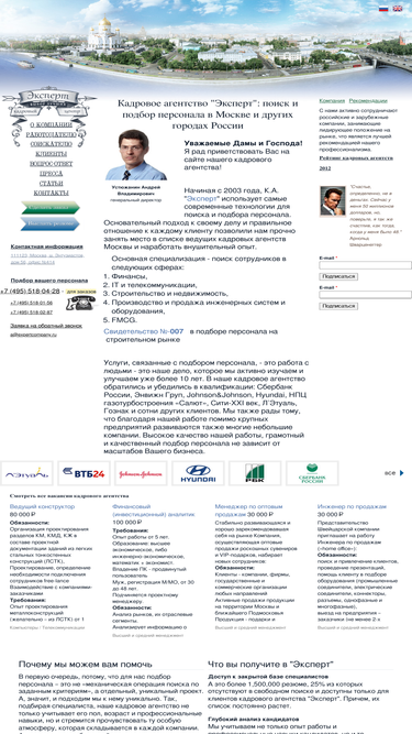 65%кадровое агентство в москве «эксперт» работает в сфере поиска и подбора персонала более 10 лет и имеет огромный опыт работы с крупнейшими компаниями россии, эксперт - одно из ведущих рекрутинговых агентств