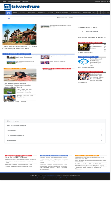 93%Website on Trivandrum. Offers information on Trivandrum News, Events, Services, Shopping, Entertainment etc