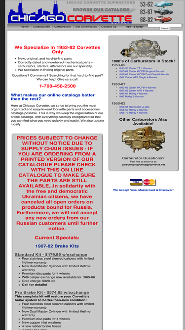 1953-82 corvette superstore -- classic corvette parts and accessories, including carburetors, starters, alternators and more
