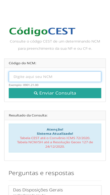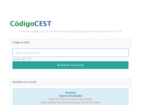 92%Site gratuito para consulta online do Código CEST para o preenchimento da NFe ou CFe
