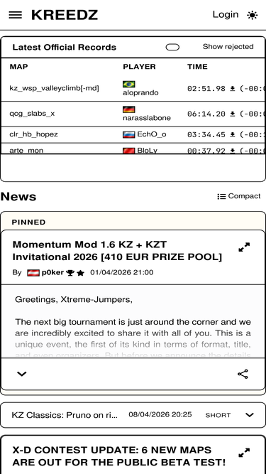 86%Kreedz.com (KZ for short) is the official international speedrunning community for CS 1.6 KZ maps. Track world records, participate in tournaments, stay updated with news content, explore the history dating back to 2004, and much more. Formerly Xtreme-Jumps.eu.