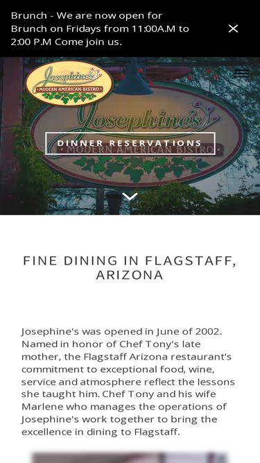 welcome to josephine's restaurant! we are a modern american bistro located at 503 north humphreys street in flagstaff, az 86001. our phone number is 928-779-3400 and our fax number is 928-272-0744.
