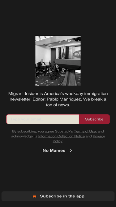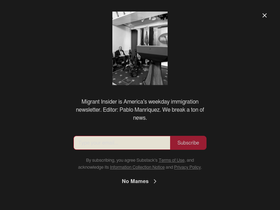 78%America's most tenacious immigration news breaker, now with full press access to the White House, Congress, and Supreme Court. Migrant Insider breaks news that punches up for a change. Subscribe to support. Click to read Migrant Insider, a Substack publication.