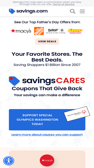 63%over $500 million saved... and counting. save money at your favorite stores including amazon, kohls, target, and thousands more. updated daily!