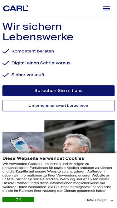 100%Kontaktieren Sie CARL für maßgeschneiderte M&A- und Nachfolgeberatung. Unser Expertenteam unterstützt kleine und mittelständische Unternehmen bei allen Anliegen.