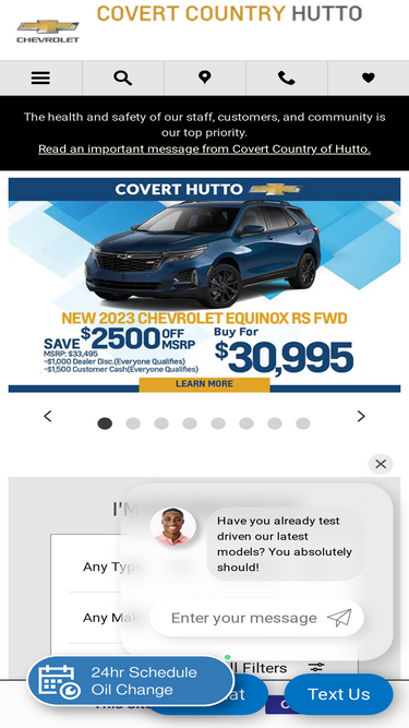 86%search covert chevy of hutto's online chevrolet dealership and browse our comprehensive selection of new car, truck and suv. buy a new or used chevrolet in hutto tx at covert chevy of hutto. serving austin, cedar park, elgin and georgetown tx.