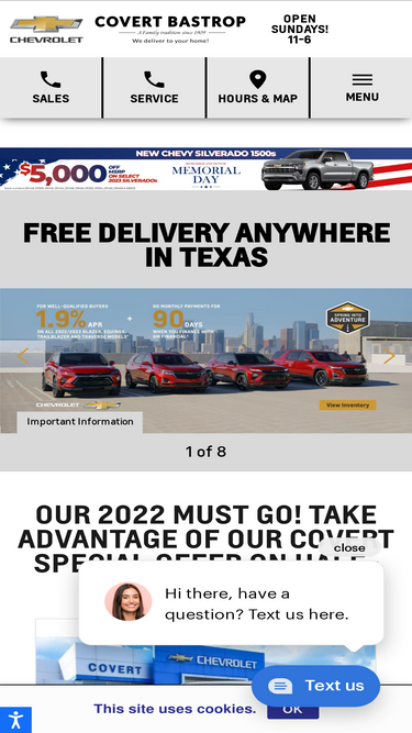 93%We're happy to serve Chevrolet fans throughout the Lone Star State. The Covert family has been at it since 1909! Read our story here.