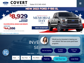 100%Discover a wide selection of new and used Ford vehicles at Covert Ford of Hutto, your trusted Ford dealership in Hutto, TX. Explore exceptional deals, customer service, and expert assistance for your next vehicle purchase