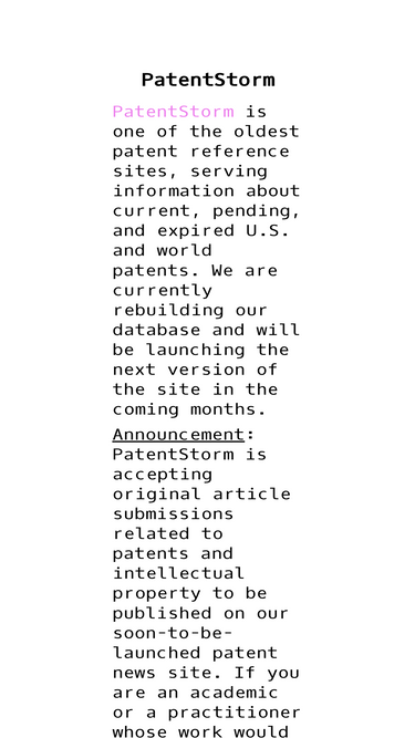 100%patentstorm is a database and reference site containing information about current, pending, and expired u.s. and world patents.