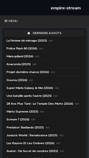 85%Bienvenue sur la page Nouveau d'EmpireStream, votre fournisseur de streaming en ligne favori où vous trouverez une multitude de productions de divertissement pour satisfaire vos envies de films et séries. Avec un catalogue incluant des titres de Prime <meta name=