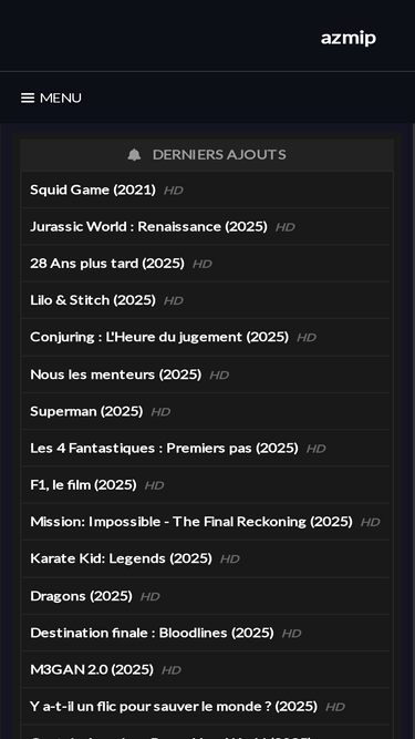 94%Bienvenue dans le merveilleux monde de l'AZMIP, la plateforme centralisée de contenus vidéo qui ne vous laissera jamais tomber dans une impasse cinématographique. Si vous êtes un adepte du 7ème art, vous allez adorer naviguer à travers nos collecti <meta name=