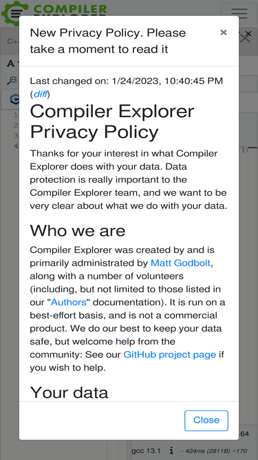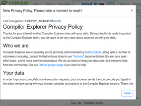 85%compiler explorer is an interactive online compiler which shows the assembly output of compiled c++, rust, go (and many more) code.