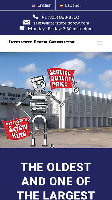 57%THE OLDEST AND ONE OF THE LARGEST FASTENER DISTRIBUTORS IN SOUTH FLORIDA Interstate Screw Corporation has been in business for over 60 years, and we are the oldest and largest fastener distributor in the state of Florida. We have two divisions, Allied Screw of Dixie, our