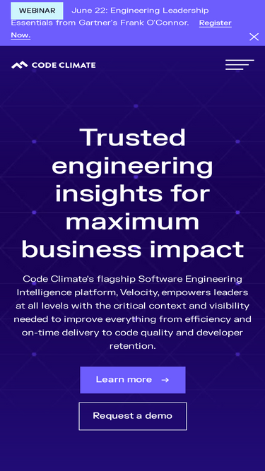 Code Climate gives enterprises the clarity and confidence to adapt. We cut through the noise of productivity metrics to reveal the signals that matter, align leaders and teams around measurable goals, and embed experimentation into the way you work. With us, engineering becomes not just faster, but more adaptable, accountable, and valuable to the business.