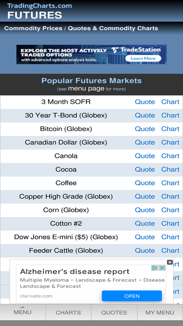 93%free! commodity prices and charts courtesy of tradingcharts (tfc commodity charts). we track many major commodities and financial indicators, making the information available in the form of free commodity charts. visit our site for the lastest market information. updated continuosly every market day.