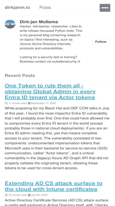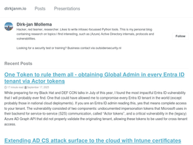 The other five competitors in the top 10 list are dirkjanm.io, cyberengage.org, community.qualys.com, phishingtackle.com, and hackerrangers.com.