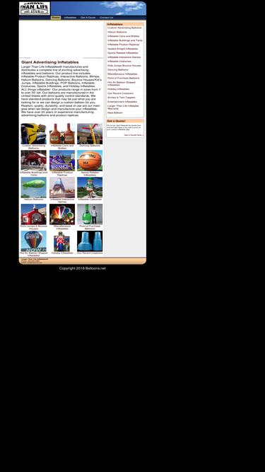 86%larger than life inflatables manufactures and distributes a complete line of exciting inflatable advertising balloons, product replicas, interactive sports games, promotional tools, signs, kiosks, blimps and many other custom promotional balloons. we specialize in custom designs and product replicas for trade shows or special events.