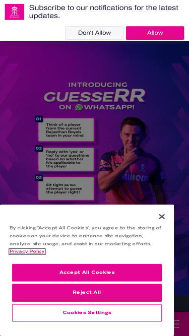 76%Rajasthan Royals (RR), an IPL 2008 winner and CLT20 2013 runners up team. Get RR match updates, IPL news, videos, photos, merchandise, players information & more here.