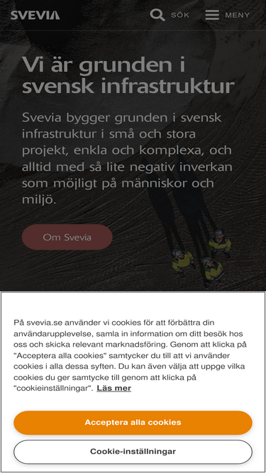 93%Vi har gjort ett tydligt val. Svevia är specialist på att bygga och sköta om vägar och infrastruktur. Vår affärsidé är att genom bra service och aktivt samarbete med kunder och leverantörer leverera rätt kvalitet vid byggande och skötsel av vägar och infrastruktur.