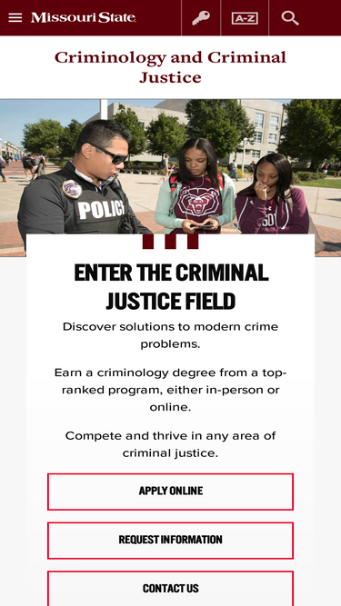 98%earn your criminal justice degree from missouri state university. available 100% online or in-person.