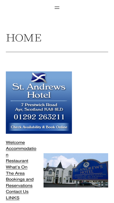 100%St. Andrews, Ayr is a small friendly family run hotel, with 8 en-suite bedrooms, restaurant, bar and games room. We are situated between Ayr Town Centre and Prestwick making it one of the most convenient places to stay.