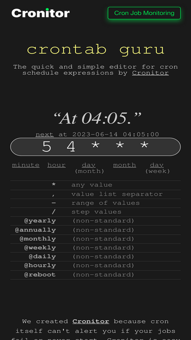 95%the original online crontab editor. corntab is a simple and quick crontab gui to help translate crontab syntax.