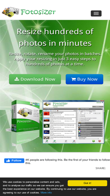 89%Fotosizer is a freeware batch image resizer tool. It resizes your photos in just 3 easy steps - 1. Photo selection, 2. select resize settings, then 3. Start the resize!