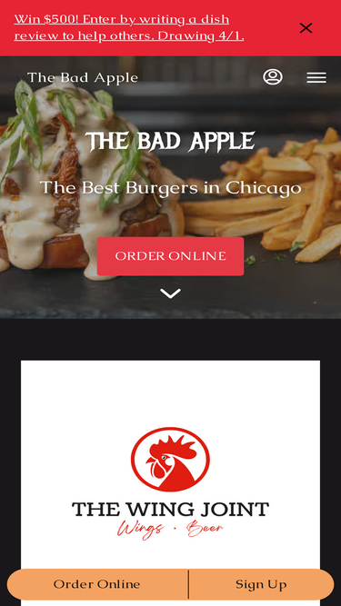 The Bad Apple in Chicago, IL. Chicago's best burgers made with a proprietary blend of all-natural hormone free short rib and brisket from famed butcher Pat LaFrieda. Everything is made from scratch including our pickles and Chicago famous ketchup.