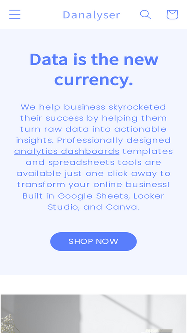 88%Danalyser provides ready-made and custom templates solution, specialises in Google Sheets templates, Google Data Studio templates, and Canva Report templates. Danalyser is founded by SL, a data analyst turned solopreneur who are inspired to help small businesses achieve success with the power of data analytics.