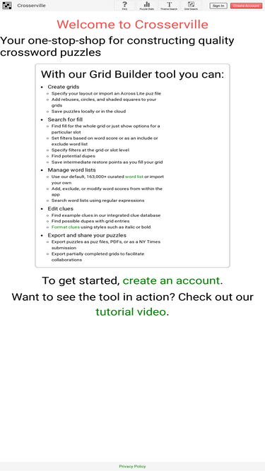 89%crosserville is a powerful web app for constructing crosswords. it includes a high-quality word list and filtering options not found in other construction software.