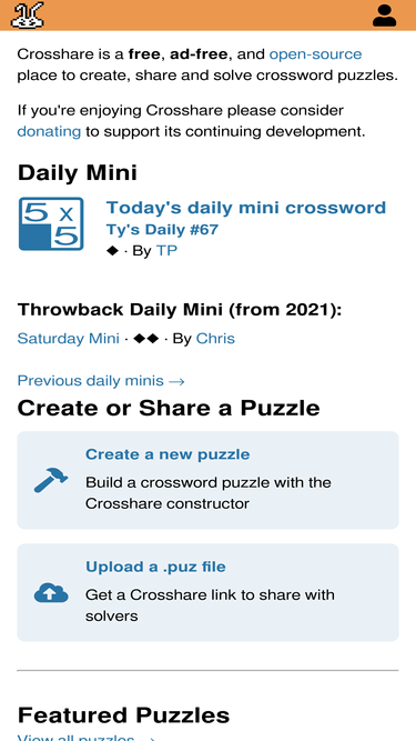 88%Crosshare is a community for crossword constructors and solvers. Each day we post a new mini crossword puzzle you can play for free.