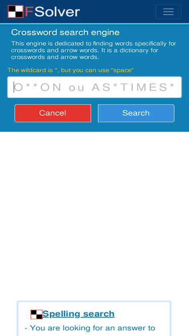 76%This engine is dedicated to finding words specifically for crosswords and arrow words.It is a dictionary for crosswords and arrow words.
