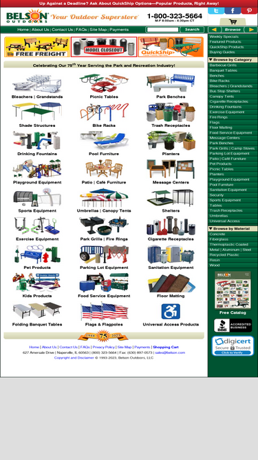 92%huge selection. great prices! picnic tables, park benches, bike racks, trash receptacles, commercial barbecue grills and more. visit belson outdoors, your outdoor superstore!