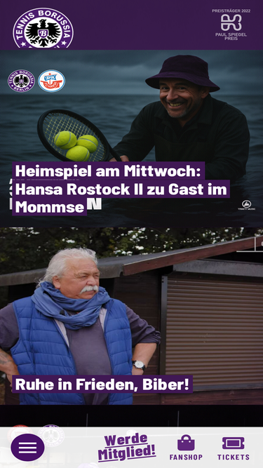 59%Offizielle Homepage von Tennis Borussia Berlin. Aktuelle Meldungen, Interviews, Termine rund um TeBe, Teams und Portraits, Historie und Fans, Fanartikel im TeBe-Fanshop.