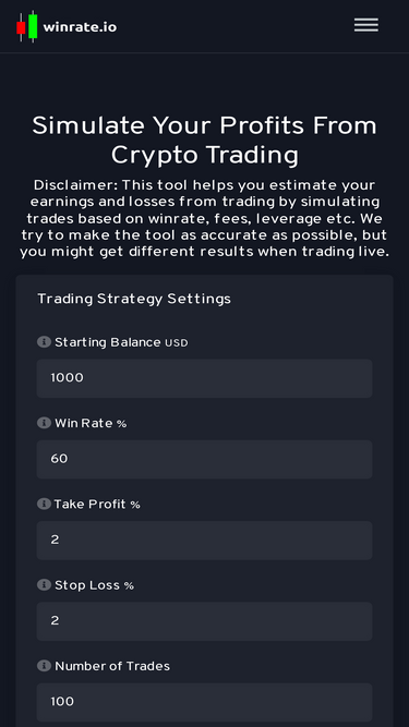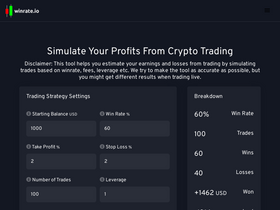 86%winrate.io lets you simulate your profits from crypto trading and shape your successful trading strategy by trying out different win rates, risk-to-reward etc.