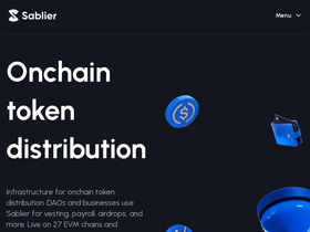 95%Infrastructure for onchain token distribution. DAOs and businesses use Sablier for vesting, payroll, airdrops, and more.