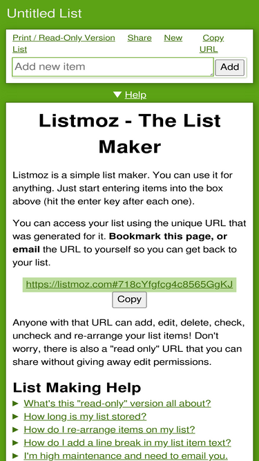 98%listmoz is an online list maker. it's free, fast and easy (and you don't have to register).