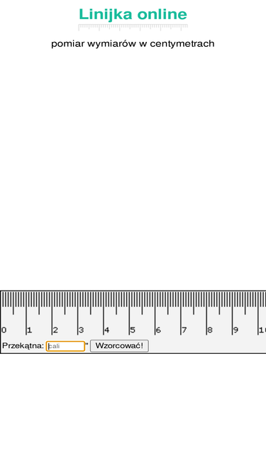 87%internetowa linijka, za pomocą której można dokładnie zmierzyć rozmiar obiektu w centymetrach i milimetrach. działa zarówno na komputerze, jak i na telefonie.
