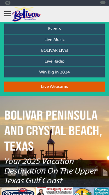 Keep Bolivar Beautiful Bolivar Peninsula Texas a laid-back community of Crystal Beach, Gilchrist, High Island, and Port Bolivar, with plenty to do and see Bolivar Peninsula tourism, events, vacations and webcams