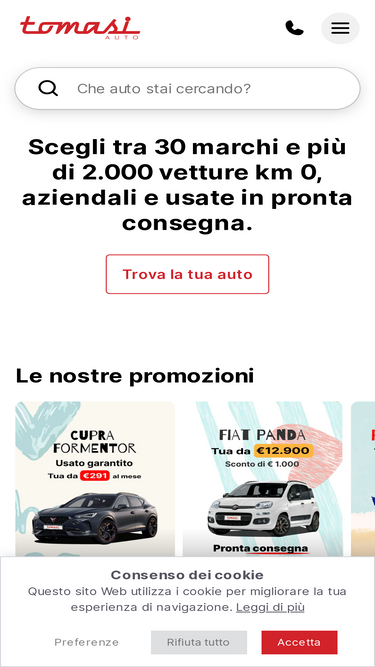86%Scopri l'ampia gamma di auto nuove, usate e a km 0 da Tomasi Auto. Concessionario leader in Italia, offre i migliori prezzi e un servizio clienti eccellente. Visita il nostro sito per trovare l'auto perfetta per te e approfitta delle nostre offerte speciali.