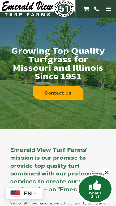 89%at emerald view turf farms, we are committed to growing premium quality fescue, zoysia, bluegrass sod and providing top-notch service to our customers. our reputation as leaders in quality since 1951 is why you will find our turf on the most prestigious lawns, golf courses, and sports fields in missouri and illinois.