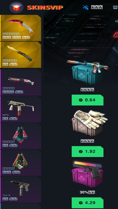 78%Join in SkinsVip.com. Hide. Skinsvip.com is a professional CSGO game prop upgrade · sales platform · Online CSGO game skin blind box, upgrade CS2 skins · knives hide · skins battle
