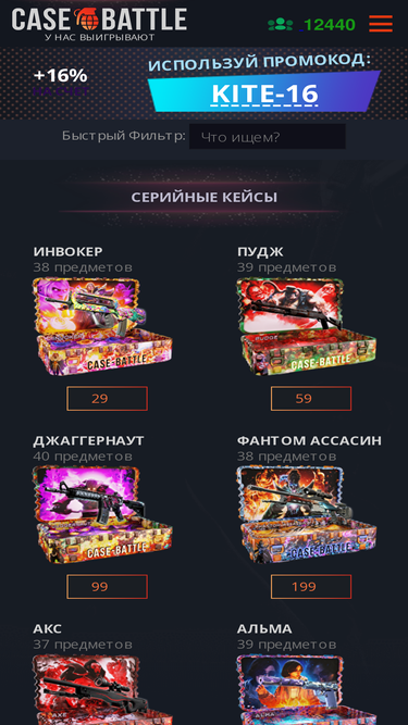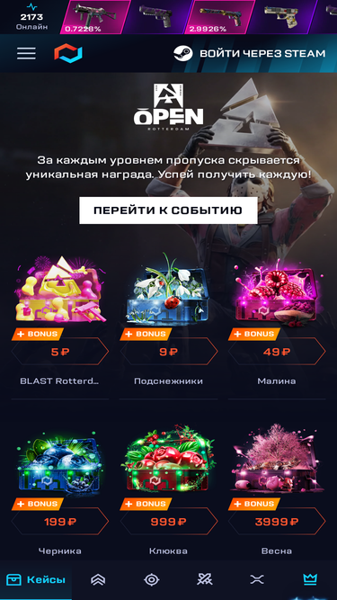 Открывай кейсы КС ГО со скидками до 80%! Колесо бонусов кс го! Бесплатный кейс кс го каждый день! Моментальный вывод скинов в Steam! Заходи прямо сейчас!