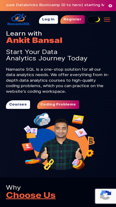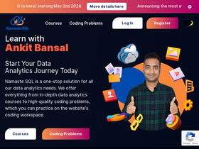 81%NamasteSQL is a one-stop solution for all our data analytics needs. We offer everything from in-depth data analytics courses to high-quality coding problems, which you can practice on the website's coding workspace.