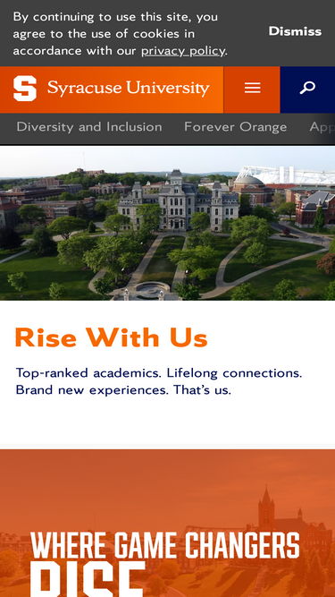 54%Syracuse University, founded in 1870 and comprised of thirteen schools and colleges, is a private research university in the heart of New York State.
