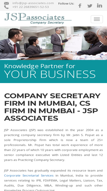 89%JSP Associates is leading best Company Secretary (CS) Firm in Mumbai, India provide services like IPR, FDI/FEMA, Legal Matters, Liaison, Tax, Audits, Due Diligence etc.